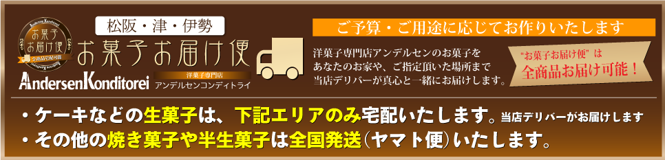 また、リストをご準備頂ければアンデルセンからヤマト便で全国発送も承ります。 人生の節目節目に相応しいお菓子をご準備いたします。